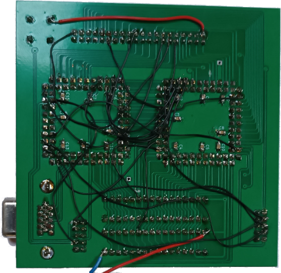 Ce ne seront pas les dernières car au fur et à mesure que j’avance dans la programmation, même si j’ai prévu huit signaux de communication entre les deux CPLD il va m’en falloir finalement plus. De file en aiguille ma jolie carte toute propre est devenue ce joyeux plat de spaghettis.