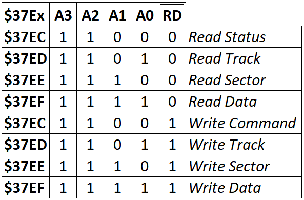 Pour cela le TRS-80 discute en "mappant" ses registres sur plusieurs adresses. Ces adresses sont réservées pour le module d'expansion, où seuls quelques unes sont utilisées pour le lecteur de disquette: